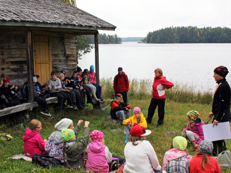 Leirikoululaisia Linnansaaressa